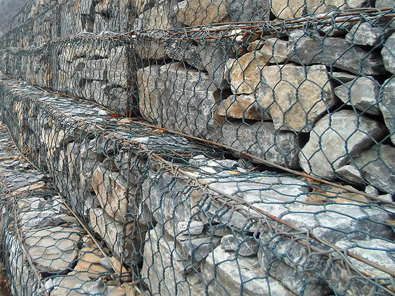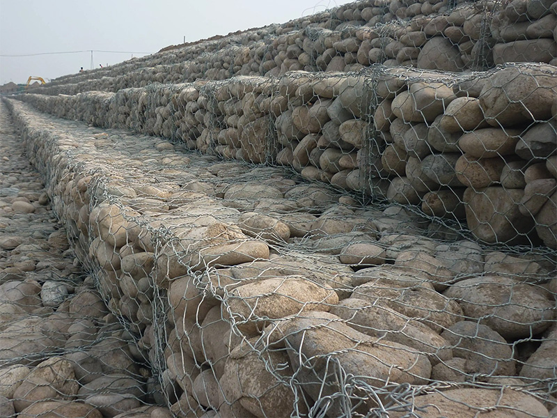 格賓籠是由金屬線材編織的角形網(wǎng)(六角網(wǎng))制成的網(wǎng)箱。石籠網(wǎng)由高抗腐蝕、高強(qiáng)度、具有延展性的低碳鋼絲或者包覆PVC的以上鋼絲使用機(jī)械編織而成,使用該網(wǎng)制作而成的箱型結(jié)構(gòu)就是石籠。